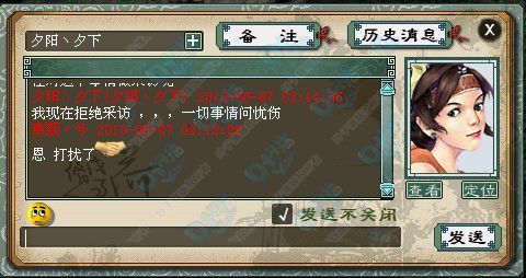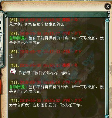 开始我以为是他们认错人了,我们队长叫“熳步”我们帮主力人叫“祉步”,我号叫“慕颜〃兮”我们帮主力女魔“慕颜〃偌”。当真的被杀以后,才发现事情没有那么简单,可我就无奈了,曾经的好友突然变的如此不讲理。