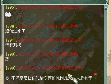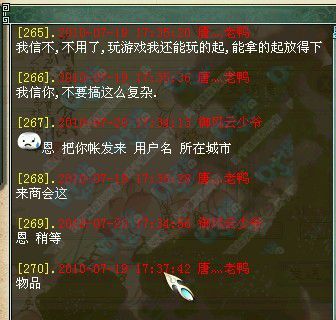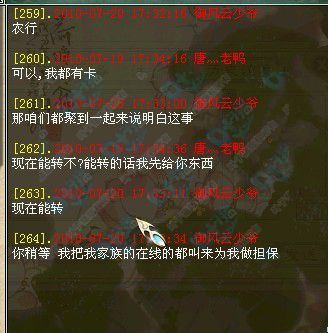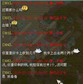 大话世界如同一个现实社会的缩影,存在着人情的来往,金钱的交易。在金钱上的交易,很多朋友是吃过亏的,而这次要说的事情,却是因为自己不小心造成此刻的事实,也希望大家以后在网银交易上多多小心,仔细操作。 切入正题: 当事人一: 买家:御风云少爷 当事人二:卖家:唐灬老鸭 (原来的Ace灬小孩子) 云少爷:在吗? 筱萱°:在。 云少爷:请你帮忙报道个事情吧咱们区的ACE...小孩子,就是现在的唐老鸭,前两天因为买东西我转账的时候弄错了,现在请你帮下忙。他的4级人法补丁2200卖我,因为转账的时候网络卡了,我又再次点的确定,给他转账出去4400块。 筱萱°:你的意思多交易了? 云少爷:是的,图跟转账的的信息我保留了下来,是否可以给你截图。 筱萱°:可以的,对方的意思呢。 云少爷:对方说他会查的,根据银行所说的如果钱重复打出去那没办法,如果是一个流水的话那在3-5个工作日会回来,现在已经24号,事情是19号发生的。 千羽筱萱°:那你有再去银行查询吗? 云少爷:银行没去,但在网银上可以查到的,那笔钱没有转回来。 筱萱°:是你自己打过去的,是不是应该对方肯还你才行吧。 云少爷:是的。 筱萱°:那他承认你多打了吗? 云少爷:没有承认,他只是说了一句他会帮我查查到底多收了没有,然后就没再联系。 筱萱°:这可完了,不好办,不是骗你的,是你自己失误打过去的。 云少爷:当初是因为网络突然卡了一下,要我重新输入MM我输入完突然收到两条信息卡里少了4400元,再看涨户上果然扣了4400。 筱萱°:那你找本地银行了没。 云少爷:找了,打电话也问了他们,说如果没转出去那这笔钱会在3-5个工作日还回来,如果打出去了必须要对方承认还钱才可以,现在已经5天了,小孩子那也没音讯。 筱萱°:如果你说的是事实,人家不还你钱,你也没法了,当时你有在大话里和他说打多了吗? 云少爷:说了,他只是说查查,我在他QQ上把截图发过去了,然后又在他大话上说了一句话,截图已经发过去了,这也是我俩的最后一句聊天记录。 筱萱°:估计完蛋了啊。 云少爷:这两天我见他一直在集市挂机卖东西,自动回复就是清号。 筱萱°:可是你问问你朋友,这不是人家骗你啊。 云少爷:骗倒谈不上 ,只能说是做人了,如果做人做得到位他肯定会还我。 筱萱°:那买家对这个事情是怎样的说法呢? 云少爷:他当时只说如果钱他查到多收了,他会还钱的但是后来就没音讯了,我曾把转账的截图给过他看但是一直没等到他的回话。 |