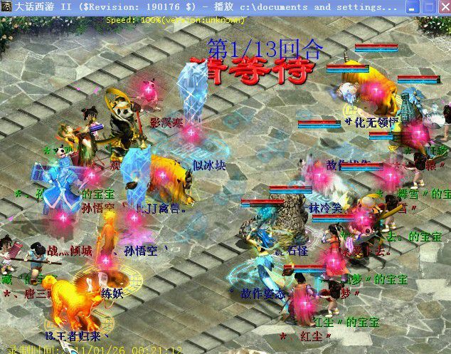 第一回合;双方女魔出盘后,我方舞雪队的敏黄金隐身女魔。对方男人首先出了大冰。己方分裂女人、男人砍鬼被保护,