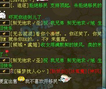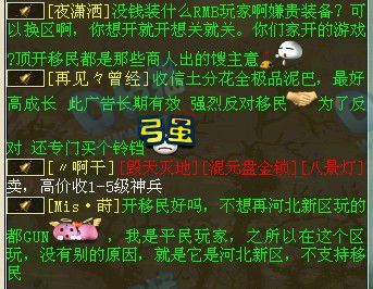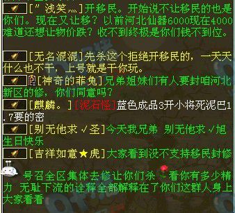 事件要回溯到很久之前,移民初开的那段时间,因为部分居心不良的“商人”无端涌入河北新区,导致区内经济混乱,物价飞涨,最后KFZ不得不出面调整,河北新区暂时不开放移民!而如今河北新区的一些商人又开始鼓捣,感觉这区没钱赚就开始想办法挣钱根本不去管贫民玩家。 >>推荐阅读:河北新区:太皓敏法小钢炮的风采 上次开移民,河北新区就乱成一团了。如果再开移民是不是再次乱成一团呢?多余的话不说了看截图吧,那些商人,想把我们不想开移民的玩家全部封修,好霸道。 [编辑:紫幻冰子]
