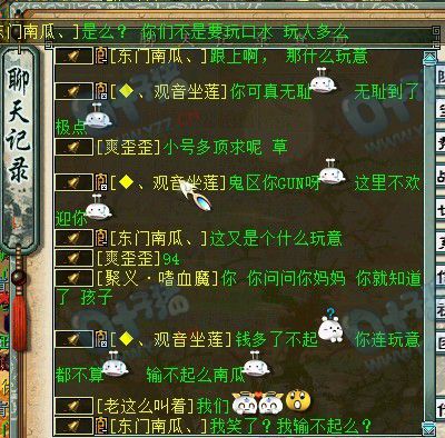 昔日,大家看到了一个传说中的神兵帝是多么的璀璨,让不少矮穷挫羡慕不已。就在今晚,曾经那个传说中的神兵帝,东门南瓜、却露出了那“狰狞”“丑陋”的嘴脸。 >>推荐阅读:最热门:东门南瓜冲神兵第十八季 不知道是东门南瓜想炫富呢还是想炫耀她人多,在21号下午,召集了他YY的小弟申请了大批量小号。从洛阳车围堵,紧接着转达长安擂台其中不外乎为她声援,呐喊“V5牛”“瓜哥威武”之类的话语。 原本我不想发帖,但是我看到了今晚某个东门南瓜、的“兄弟”,颠倒事实的真相,我果断的决定发帖吐槽一番,做为一个大话西游2的玩家,大家都是想要有一个美好而又和谐的游戏环境,然而你东门南瓜、占着你有点“钞票”。 召集整个YY的小弟为自己申请小号在丹青画境皇宫对他人人身攻击,甚至乎在YY发言让小弟们骂人不要带脏字,斯文的骂,不管你恩怨不恩怨不管你有钱没钱,你没资格这么做,你凭什么影响他人的游戏环境,你凭什么来破坏我们游戏的气氛目的是什么,是为了炫富,还是炫耀你人多,甚至乎问玩家是否要跟你比人多。。。 平时,皇宫PK,骂人,很常见,但是我还真TM没见过你这么无耻的,请人来帮你骂人5你自己不骂怕玷污你的形象?怕破坏你的名声? 后来因为PK输了1E,恼羞成怒,开始铃铛骂脏话,你自己有没有廉耻心,你问别人是什么玩意的时候,你想过你自己又是什么玩意了么?原本你的形象一直很好,一直让人觉得你是神话,如今,你在丹青画境,不过是过街老鼠,人人唾之。有钱了不起么,你钱多过李嘉诚么?你官大大过LI刚么? 在这里,我希望那些当东门南瓜、为传说,为神话的人们,不要盲目“追星”,看清楚为人再选择是否要“追”。 [编辑:紫幻冰子]