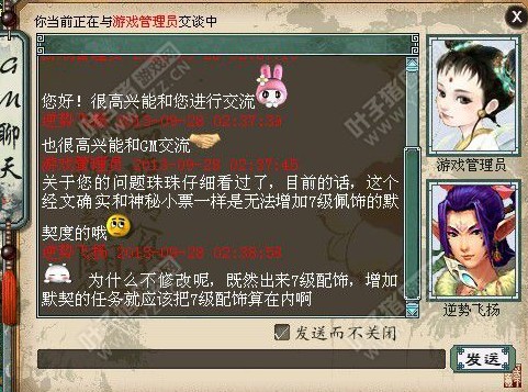这周周末任务是版在千秋,本想着利用能净业障这品经文来刷下自己的配饰的默契度!但是,能净业障并未显示效果,是不给七级配饰增加默契度的! >>推荐阅读:快来围观:大话里的土豪金召唤兽 不少玩家反馈:小票不加默契,雕版也不加默契,师门也不能养默契,现在DHB产出越来越难了,网易到底闹哪样?对于这样的情况,其中就有一个玩家质疑GM的态度,奈何GM全盘打太极,最终没话说还提醒玩家早点休息!对此,你怎么看? [编辑:紫幻冰子]