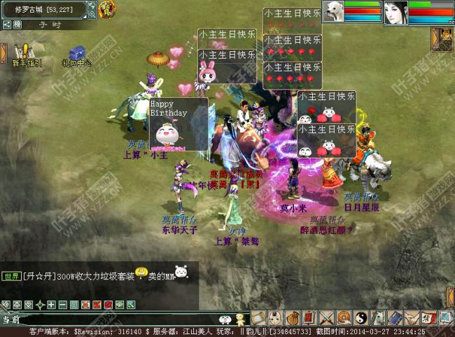 欢迎来到叶子猪CC30001频道,这是一个叶子猪大话西游2专属频道,在这里你可以边玩游戏,边享受他人的经验分享,而且还有丰富的活动和奖品等着你哦! >>推荐阅读:这次我们玩大点:CC30001十万点卡送给你 这是给江山美人的美女帮主庆生时候拍下的,该活动是由叶子猪CC30001频道独家承办话。 废话不多说,直接上图。 [编辑:小虎]