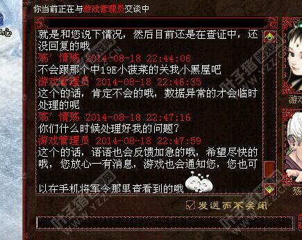 玩家爆料:洗技能成了我们日常里面经常用到的功能,有些玩家比较节约也比较攒着钱,所以宁愿大老远的跑回到阁子里去洗也不愿意随意洗,毕竟这两种方法之间的费用差距是50%。 >>推荐阅读:一周回顾:比武石头蛋蛋惨败 淳郡王夺冠 而对于一些有心的玩家来说,他们在不经意间发现在阁子里洗的收费已经上涨到了15万,也就是跟平时洗是一样的。这或许之前惠民政策的一个利好消息的因由,但是玩家气愤的是GM的回复:一句不是全部设置的修改都是会公布的,都是重要的才公布。这样的行为太让人胆战心惊了。下面是与GM的对话截图! [编辑:紫幻冰子]