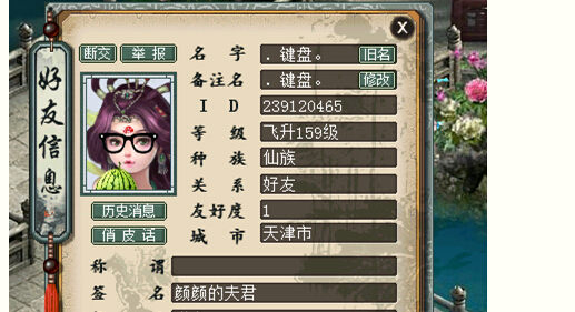 (3)大话第一仙 说到大话第一仙,说实话,现在的仙,我真觉得一般,在我心中,曾经的键盘绝对是大话第一仙,完美的宝宝技能搭配,明察锤子,妖火狼引领着明察神兽的潮流。键盘一出手,就知有没有。超强的仙器炼化属性让人羡慕嫉妒恨。键盘永远追求的是一种克和狂暴的平衡。 |