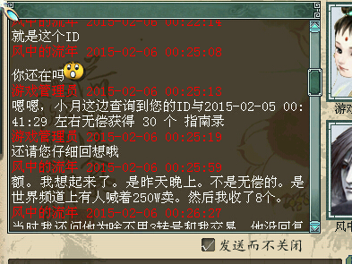 这位玩家不过交易了30本指南录,结果就被GM查了,说是非法交易,全部没收,这位玩家当然很委屈,因为自己并不觉得哪里错了,亲爱的大大们,您来看看此事的经过,到底是哪里错了呢? 下面就是这位玩家的原话: 事情是这样的:昨天世界上2转号喊250W卖指南,就加了好友。然后对方说在小号上。让我去渔村。然后去了交易小号带不了那么多钱数。一共是8本。然后就来了个小号。小号组队队伍里有个3转的号。小号和我说交易一次。我给3转号250W。然后就...大家看图吧: |