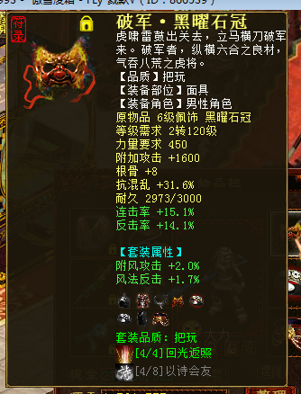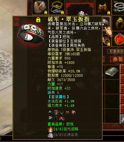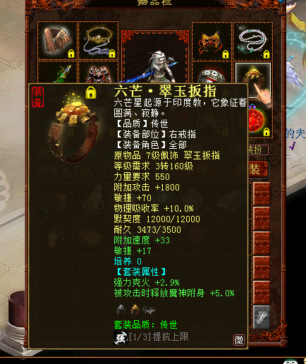 四,戒指选择,戒指也是大力男鬼选择的一个方面,目前百家争鸣,五花八门,我为了提敏,所以把戒指洗成力量要求加敏,速度,或者根骨,力量属性,这个属性非常好洗,也便于挑战敏顺序,如下图。 五,面具的选择方面,目前面具默契方面有连击率,连击次数面具,无默契有连击反击属性面具,我选择反击,所以面具选择连击 反击属性面具,如下