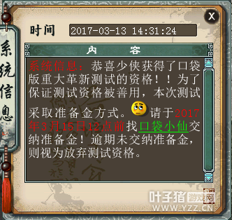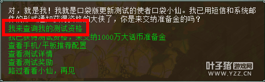 近了,近了,全新的口袋版离我们越来越近了!今天已经陆续发放首批测试资格,小伙伴们都拿到了吗? 如果你收到一条这样的系统消息,那恭喜你成功获得抢先体验口袋版的机会。 系统提示 你也可以在长安桥上的口袋小仙处查到是否获得资格,因为也有可能是之前朋友上号,然后没来得及通知你已经获得资格。 可以查询资格
