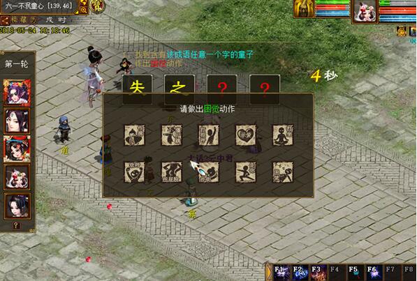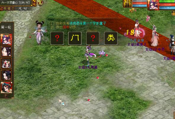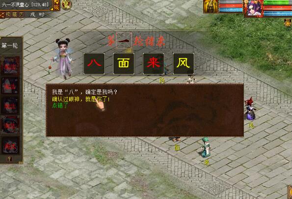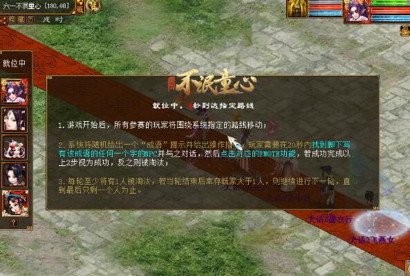 2.凑齐5个人即可进行游戏。这个玩法其实很简单,凑齐5个人后,大家会在系统的安排下在红色的路线上走动,系统会随机停止走动,大话精灵开始出题,大家需要猜出这个成语,并在20秒以内走到这个成语的任何一个NPC附近,点击该NPC,然后根据提示点击打坐或困觉功能。 如八面来风这个成语,可以找到脚下写有“八”、“面”、“来”、“风”的任何一个童子进行点击。 注意,每次操作的时间只有20秒,正确答案永远比参与人数少1,所以每轮至少淘汰1人。所以大家动作一定要快,猜成语一定要准噢! 3、每轮游戏都会淘汰至少1个玩家,如果场上晋级玩家在2-4之间,游戏将继续,直到淘汰到只剩最后一个人为止。 4、游戏结束后,大家将会根据各自的表现获得相应积分,积分可以用来兑换奖励,每轮可根据淘汰人数获得200-800积分,单人每天最高可兑换积分为4000分。 需要注意的是活动结束当天24:00前将会清空积分,清空时如玩家身上有积分,则直接将其兑换成经验,所以请一定要再当天23:59前兑换完毕哦! 这个儿童节,放下所有属于成人的烦恼,痛痛快快的玩耍一次吧! <<<点击进入大话西游2论坛讨论>>> [编辑:韦小贝]