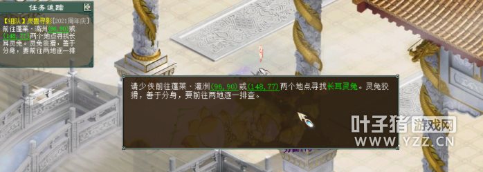 活动期间在华清仙宫(197,140)处寻找神官陆吾进入聚气灵台。