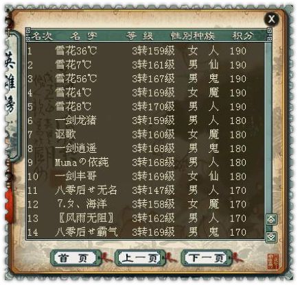 【雷音寺】 水陆战报: 雷音积分2