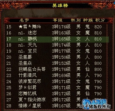 最终真无极队伍输了。 最后这场是雨打芭蕉的烟鬼队伍,他们的打法让小记很佩服,在前5回合没挂盘的情况下居然顺利翻盘,并且让对手毫无反击的机会,取得了胜利。下边我们一起欣赏下部分画面。 第一回合他们的男魔没有去大速,而是直接上去砍,连击附吸的战术。 一个大睡控制住了局面,让损失惨重的烟鬼队有了喘息的机会。 一个很强大的5冰,挽回住了局面。 男魔的连击附吸战术,取得了很好的效果。 最终,烟鬼队取得了最后的胜利。 好了,本次水陆报道就到这里,以后我们会尽量只发带有录像的服务器水陆战报,精彩的录像我们会与大家一起讨论分析,希望各区的水陆队伍以后能积极找我发出你的录像与大家一起分享。期待更多精彩录像的出现。 请大家记住我的联系方式。想上水陆战报,联系小暖 QQ:289592359 服务器:紫微宫 联系人:暖暖,雨晴 [编辑:灵心雨梦]