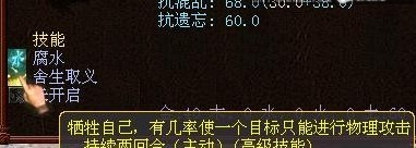 3,“舍身取义”技能:牺牲自己,使一个目标只能进行物理攻击,持续2回合。此技能在20W亲密的时候是54%的几率,虽然技能强悍,但是自杀后只有一半多点的几率,所以只能排名第7。 |