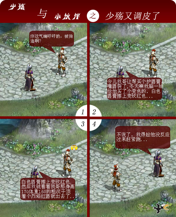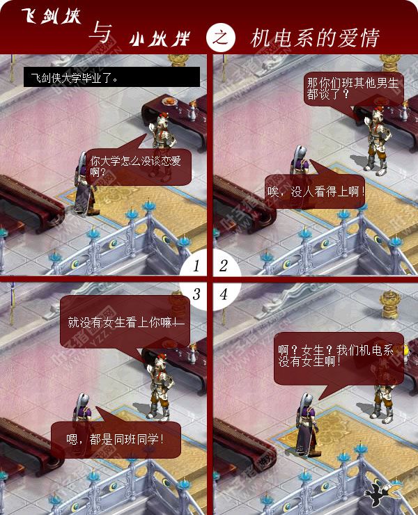 >>推荐阅读:丹青阁出品:11月乐趣无限四格漫画汇总 2013年即将过去,这一年里大家取得了哪些成绩,收获了多少欢乐呢?现实中的生活和游戏里娱乐是否让你愉悦呢?如果你还在为忙碌的工作和辛苦的冲级倍感疲惫,就随小编一起看看丹青阁出品的四格漫画吧!相信一定能给你一个轻松愉快的心情。 <<<点击进入大话西游2论坛讨论>>> 更多游戏资讯请访问叶子猪游戏资讯中心:http://news.yzz.cn/ |
