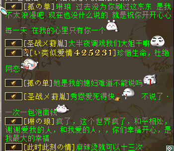 一生一世服务器出了件奇葩无比的事,实在难以用言语来形容它的精彩和离奇程度,好在这一切都是在铃铛上面发生的,大家可以亲眼目睹它的发生.... 我们就一起来看看,在这个连男的都要抢的时代,到底出了什么鬼... |