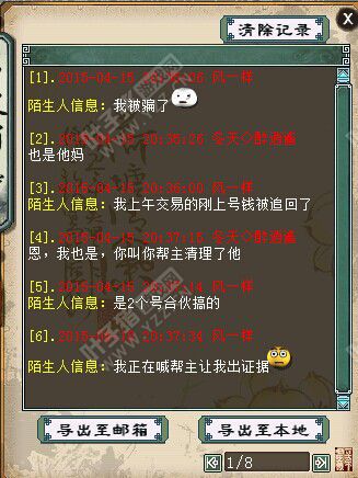 冬天醉逍遥昨日在论坛发帖称又被好友欺骗,小编想说!杜绝线下交易从我做起啊!希望大家有所警惕。 >>推荐阅读:大话西游2记者小报:冬天与冰鬼6阶仙器事件访问 老是用信任的眼光去对待游戏里的某些好友~结果今天又遭遇被找回!! 其实GM一再提醒不能线下交易,结果老实人老是被游戏里所谓的好友以急需用钱而来欺骗!难道游戏里人与人之间就毫无诚信可言?以前也遇到过线下交易被找回的情况,还以为交易了物品就应该不会被找回,结果今天中午交易的游戏币,下午就被找回!!连交易过去的物品都没退回给我!唉~ 这次有保留所有截图 <<<点击进入大话西游2论坛讨论>>>