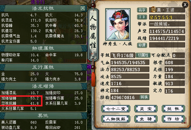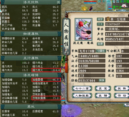 另一个男魔进战斗属性图,不吃符,基本正常一直都是不吃符状态