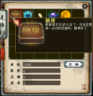 其中比武勋章兑换的奖励内容: 1000比武勋章可兑换随便