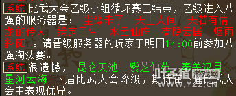 大话西游2第46届天下第一比武大会的小组赛已结束,下面公布四组的八强服务器。 期待明日下午2点的8强淘汰赛,叶子猪与你们不见不散。 比武大会甲级小组循环赛已结束,甲级进入八强的服务器是: 比武大会丁级小组循环赛已结束,丁级进入八强的服务器是: 如意令 红颜知己 龙城飞将 云山仙音 浣溪沙 六桥烟柳 沧海月明 月下美人 [编辑:wei]