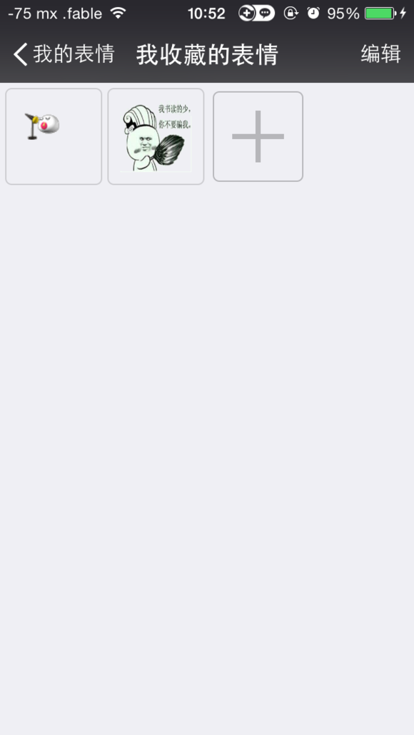 玩了十年大话,已经到了不使用大话表情就不会聊天的地步。玩家zxan2007就开始研究怎么在微信里使用大话表情并给大家分享下哦! 下面就开始进入主题,主要分两大部分,第一部分为了照顾伸手党,我会把已经做好的表情发给大家,第二部分详细介绍流程。 首先打开微信,找到右下角的设置按钮 然后打开我收藏的表情 |