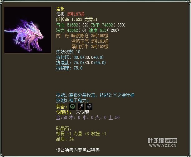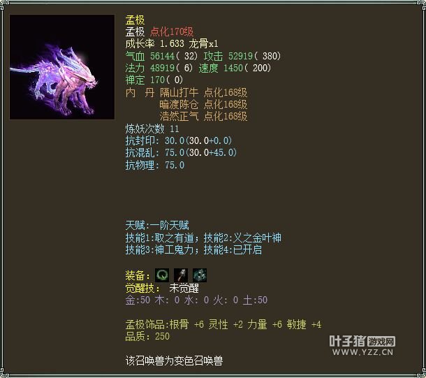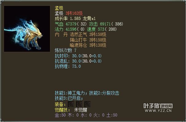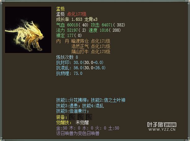 【1.5-4年服务器】 【不可移民服务器】 (同样技能无元气丹还是同个服务器的孟极标2350元,这个图我就不截了,肯定买有元气的划算)