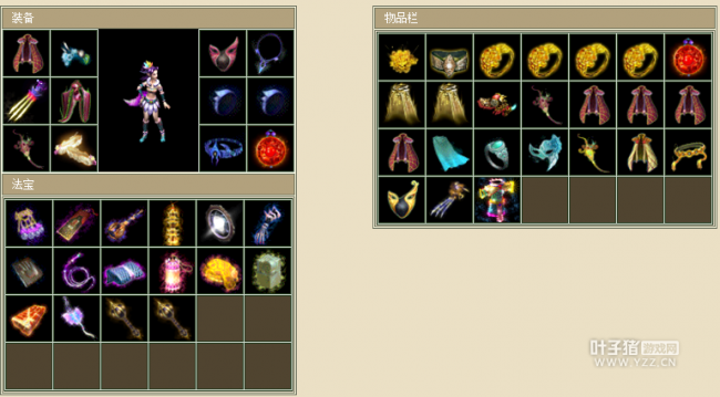 从人物抗性来看,抗性做的很不错了,从法术增强上可以看出应该用的是仙器。 装备一览