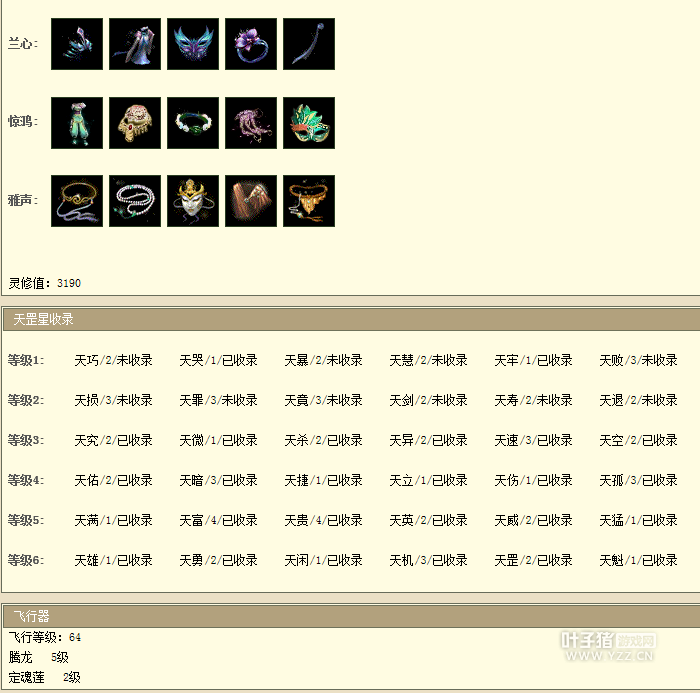 套装比较重要的破军于归罗刹都有了,灵修值还有3190,星盘方面大星星的星魂都收录了,算可以了。飞行器直接5级与7坐骑融合了。