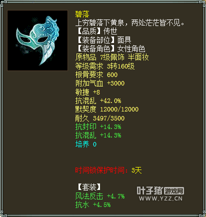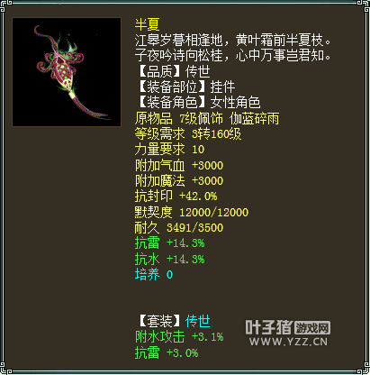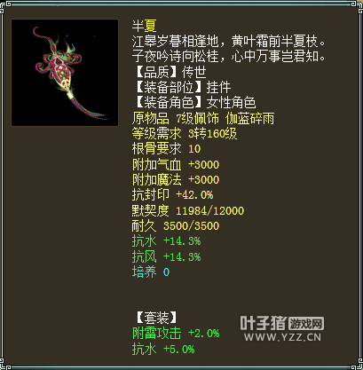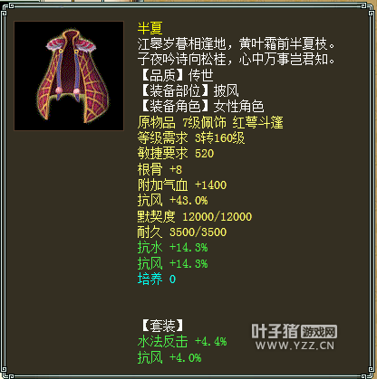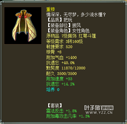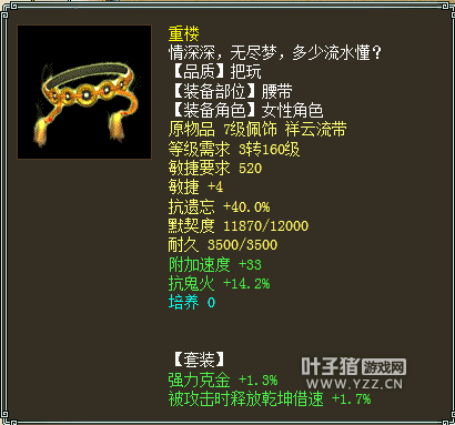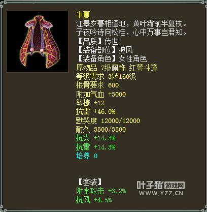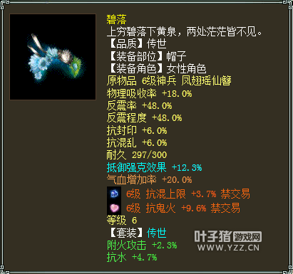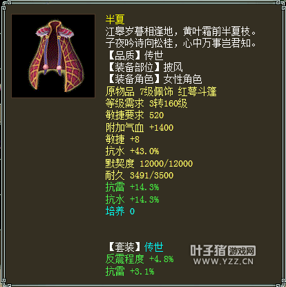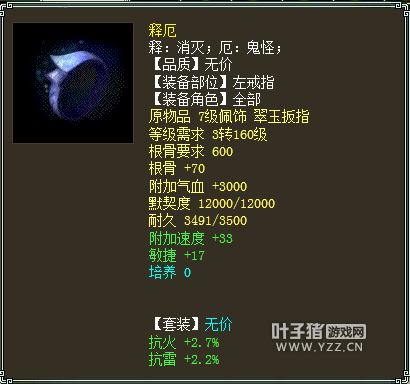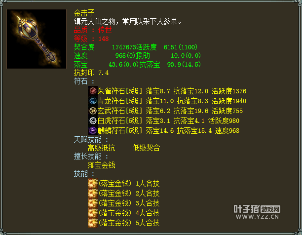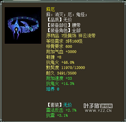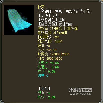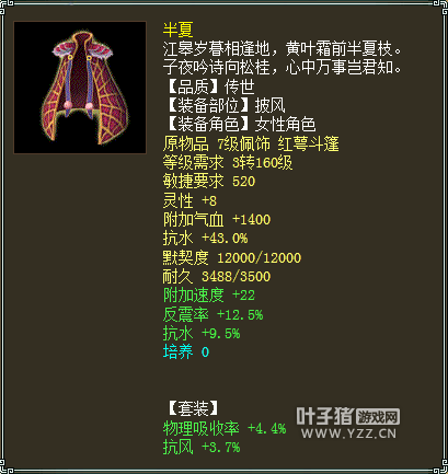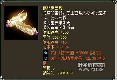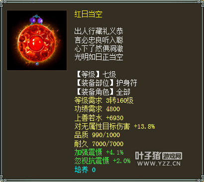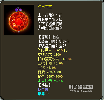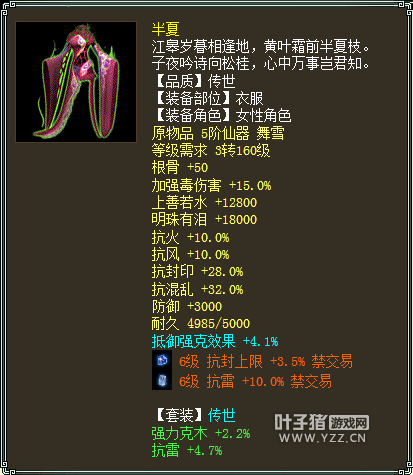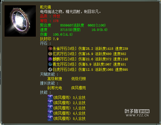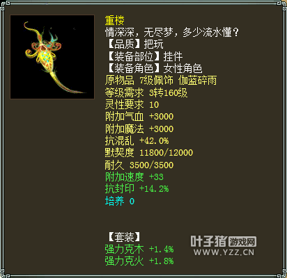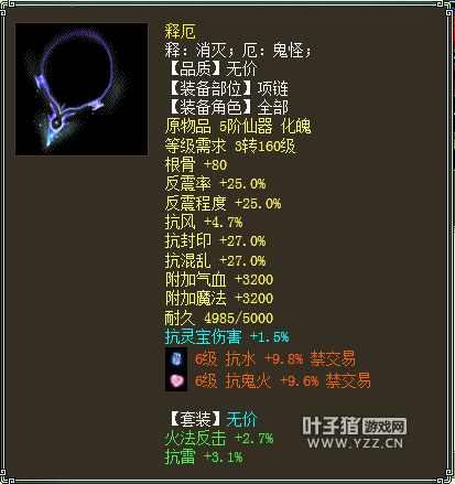 从人物抗性来看,抗性做的很不错了,从法术增强上可以看出应该用的是仙器。 装备一览