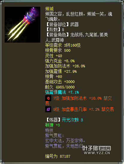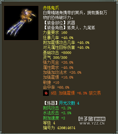 好了,下面详细展示下女魔的配置和宝宝 5阶武器