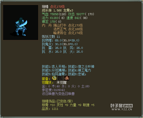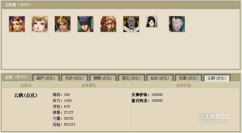 号上留了8只宝宝,丸子宝宝那个头像真小,估计后面藏宝阁会优化。坐骑全部点化满吃胫骨满。 人物修正和法门