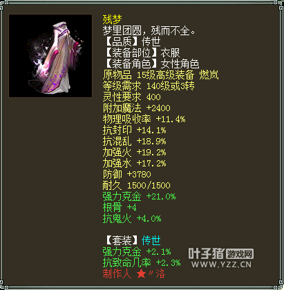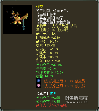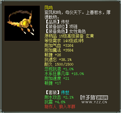 开启了三套属性点,抗性方面做得不是很好,难道是任务号?我们继续往下看 装备物品栏一览
