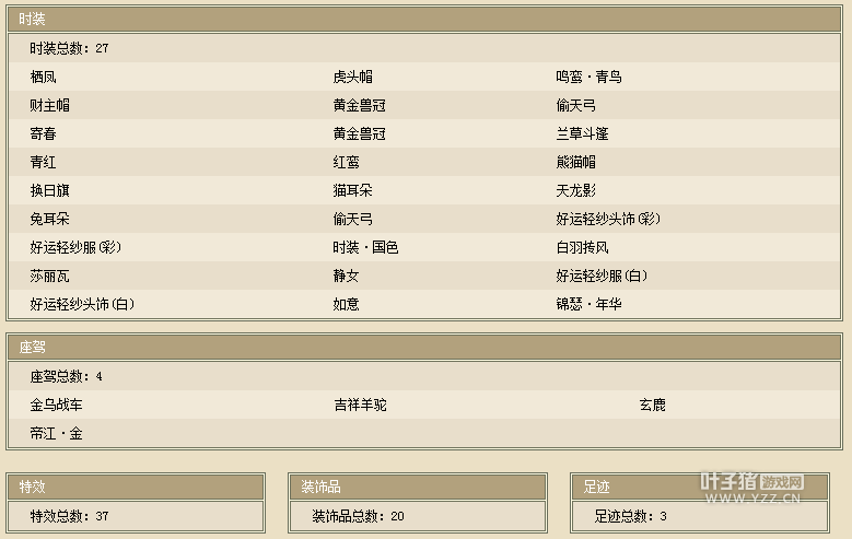 时装特效不少哦,座驾也有4个,下面来看看号上的配置。