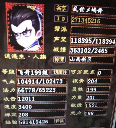 大话西游2 3400敏男人展示 2000敏10W攻大力可砍可抽