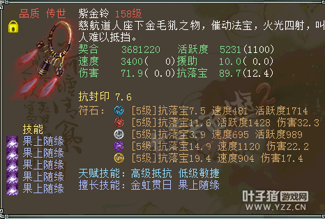 我觉得我的灵宝比最后一个敏高! 高级低抗+低级敏捷紫金铃