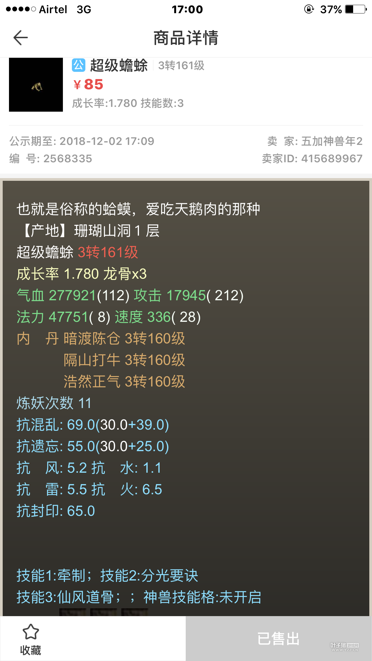 大家好,我是碧海潮生服务器的兄弟情深=傲,今天用手机版看到了一只神兽蟾蜍只售85元,而且是没有指定ID的。 [编辑:米奈]