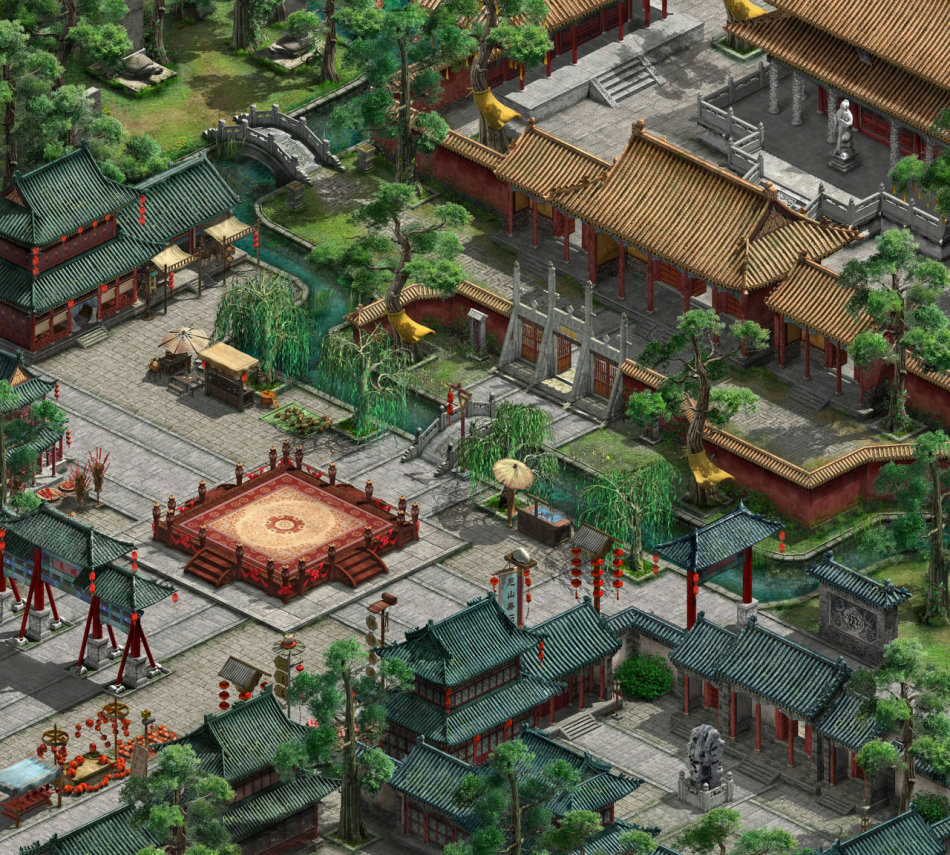 这个场景也许小伙伴们很熟悉,种族比武等都用了这个场景,不过它最早的用途是打帮战。那时的帮战很有意思,战败的队伍会被系统送回长安,直到对面的帮派没人了就赢了。一些小伙伴们就开始各种招式,柒柒记得有次帮战打的对方没人了,结果站半天系统没反应,我们都以为出GUG了,帮主大大让我们都可以离场了,当帮派的人全部撤离回到长安,系统宣布对面的帮派赢了,大家都懵逼了!原来啊对面有个玩家变成一只小蝙蝠躲在角落没被我们发现,所以整个场地大家都走了就剩他一个,系统就判定是他们赢了。 如今回想那时帮战打输的一幕,依然觉得好有意思!那时还有修罗古城攻城,从底下努力攻城门冲到顶部,再后来攻城发展成全新的 孔子庙场景图(图片点击可放大)
