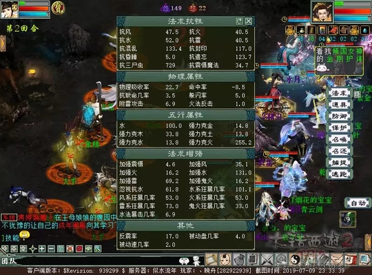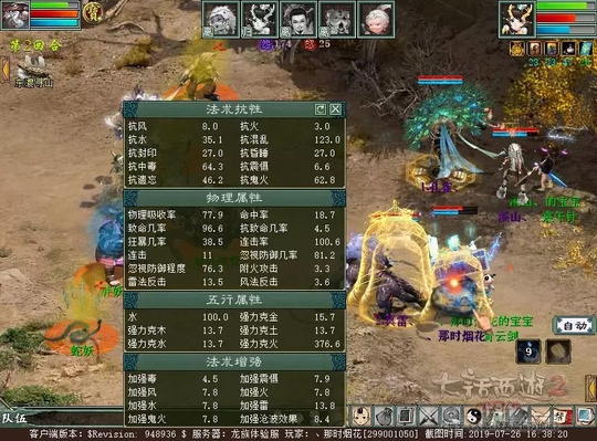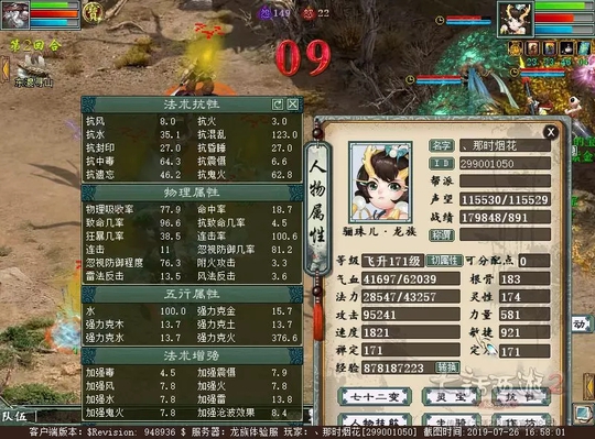 6、属性图(说明:6阶双100,霹雳20,开至圣172队长的域外,有2牛情况下小怪连击必死,主怪有几率死,第二回合铁骨死)