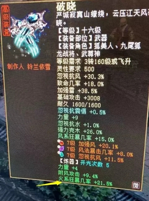 4、忽视风强雷武器,炼器火系狂暴几率21.5(晒图人:孟占佳)