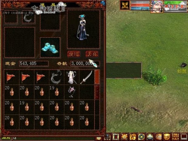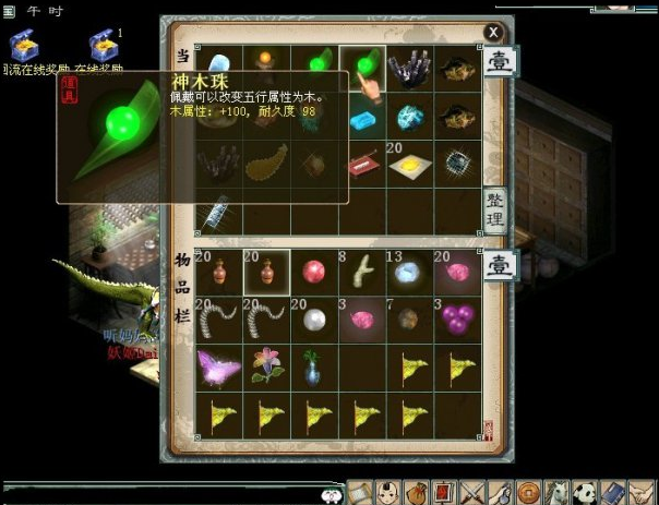 东海渔村地图已开始改的很大气了,不过有些玩家经常会忘了这个版本 当年从村子只能传送到长安东,要自己想办法跑去长安城,一路遇到毒蛇和海龟,那个艰辛啊…… 再看看当时的道具界面: 现在回看,挺简陋的