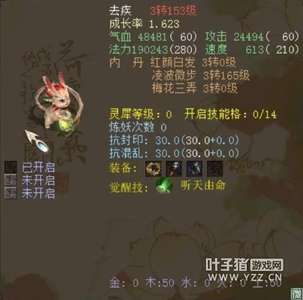 去疾 今年新出的第九代宝鉴召唤兽,天生技能百草,竞主动攻击或施法时,去疾将迅速长大,主动攻击敌方或者施放风法时有几率生长百草,随机缠绕场上多个目标,若缠绕己方目标则为其回复血法,若缠绕敌方目标则对其造成一次风雷涌动伤害。去疾长大后对敌方造成风法伤害时会额外增加伤害。