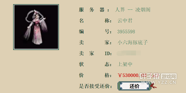近日大火区又有一天价仙号上架,看样子应该是商人手中的资源,大家看看这53万的售价其中有没有水分,值不值这个价? |