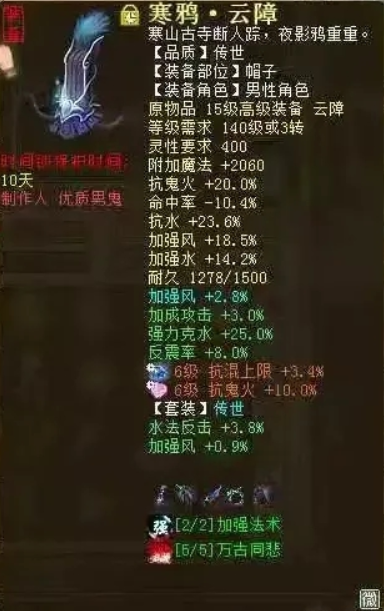 最近才买了号,想让大家鉴定一下这跨服买的克水四件套如何?武器高忽视风克水,项链克水加风系狂暴几率,衣服帽子均有蓝字强风属性,请问穿上这四件套是否是一名合格的风法大仙呢?