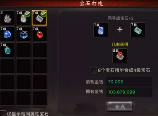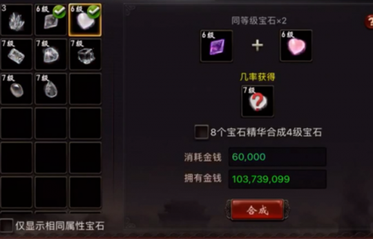看这一波宝石合的如何吧,目标是两个六级合到七级,然后四个七级再合两个八级,看看顺利不顺利!