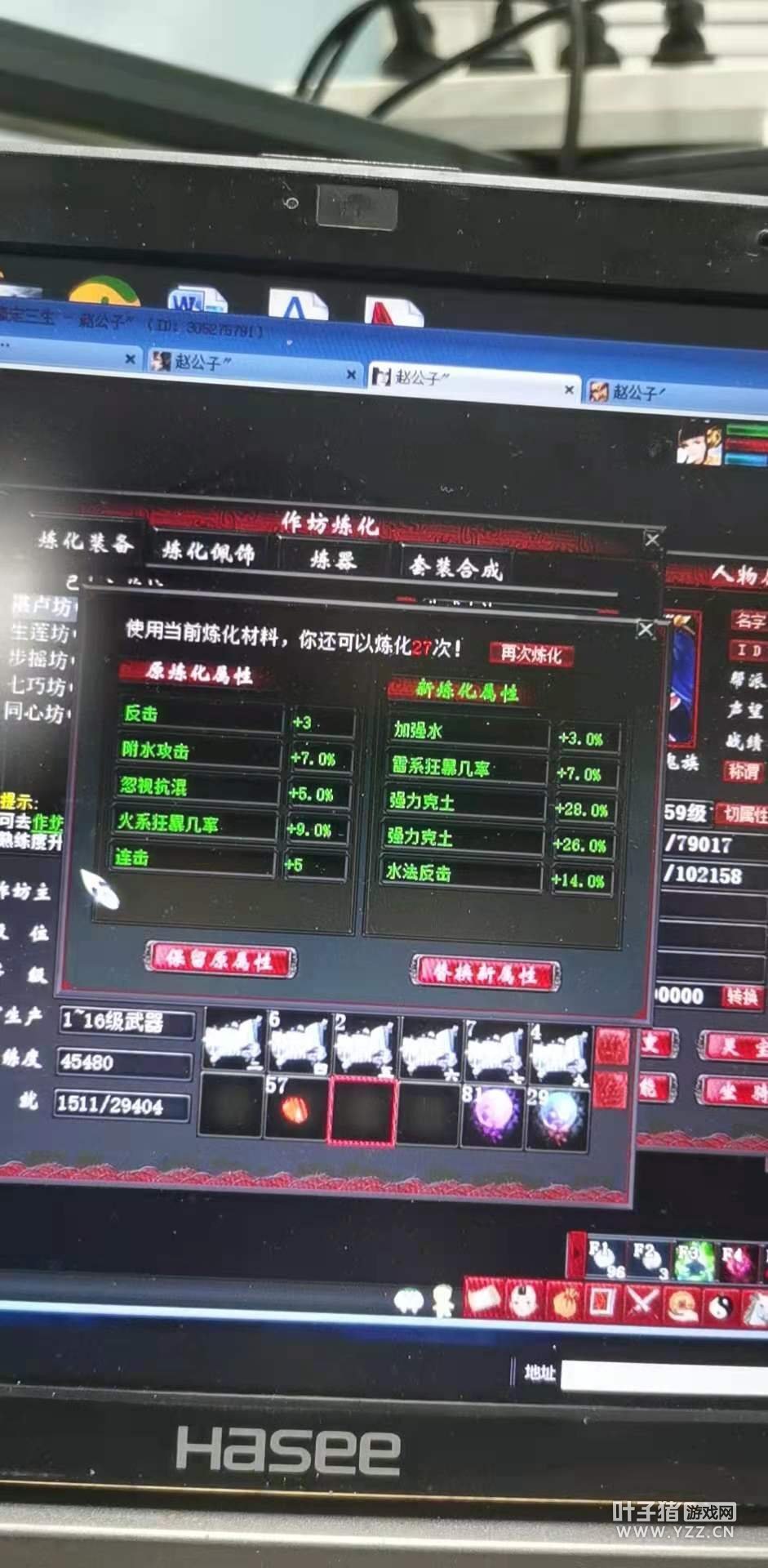 虽然有“炼化毁一生”这句恶狠狠的俗话在前,但是也挡不住玩家们寻求板砖变金砖的脚步。如果说刮刮乐的几率性太强,炼化肯定不服,因为刮刮乐你赢了就是赢了。但是炼化呢?就算给你好属性,但是底子问题,呵呵! 晒图人:,。? 克水大力,喜欢吗?