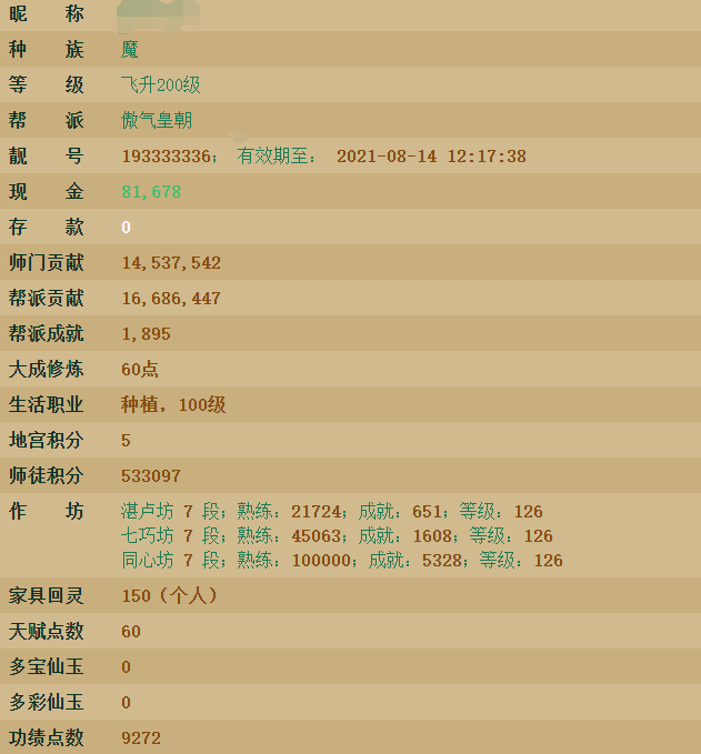 一起来欣赏一下这个号,在计算物资价值的同时,也看看一个高手敏魔是怎样配置的吧! |