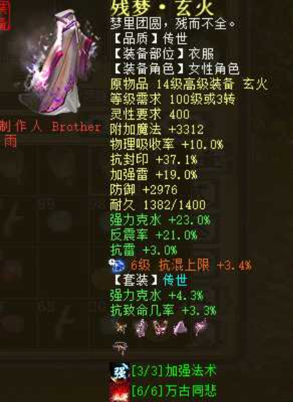 整体来看,除了部分装备上的克似乎还不够高之外,其余的貌似问题不大,各位兄弟还有什么好方法能帮她提升伤害的吗? [编辑:soien]