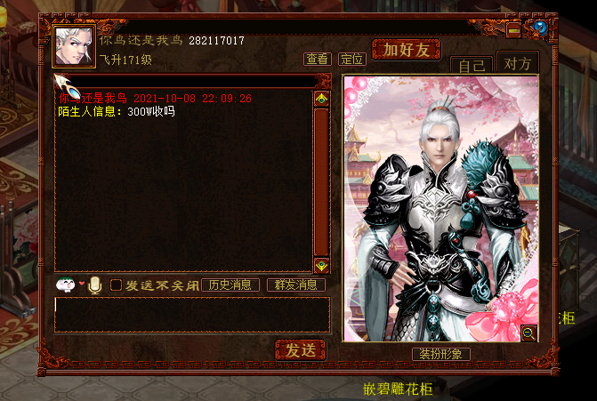回流玩家许久不游戏,对系统和物价不太了解,出现这种乌龙也在情理之中。不过咱能不能先了解下市场再喊呢?摆摊的点开看一看,而且很多回复也暴露人品了,有的直接开骂,有的直接询问是不是少了个零头,有的开玩笑在30万的基础上加价收,不知道回流的老铁们有没有遇到过这种尴尬事! 晒伤害、晒几率、晒视频、招募、进群请扫描下方二维码与小编进行亲密接触! [编辑:纳兰德骑士]