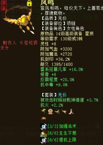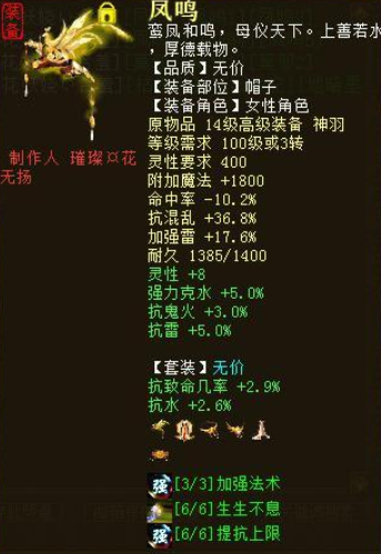 今天给大家展示一下自己打造的无属性凤鸣小仙,主要用于日常升级任务和副本用,先来看看装备搭配吧! |