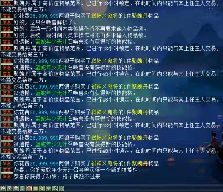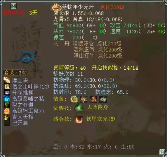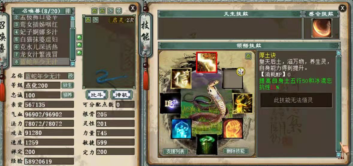 来看一条极品全满毒蛇,主人为了给他开8格子,聚魄丹真心吃了不少,但是重点不在吃聚魄,而是这条毒蛇太极品! 变色毒蛇全貌
