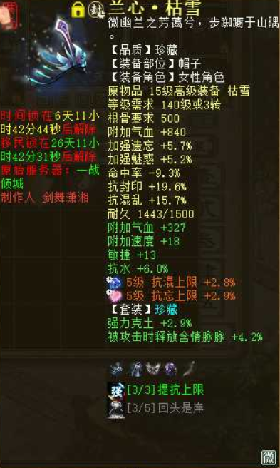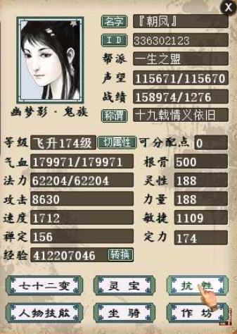 看看我的小小遗忘女鬼,花了些钱更新了两三件装备,后面应该不会再动了,点粹没弄,忽视34.2+符5+星阵2.7=41.9(加帮派强法46.9) 强36.8+颜如玉21.4+月卡8(久没开掉5了)=66.2,还有3件装备没传世,洗炼能再多1-2点强! |